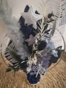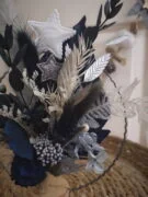 Ce cercle fleuri offre un camaïeu de bleus, une pincée de pureté grâce au blanc et un soupçon de magie par ses touches argentées.