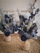 - Assemblage de fleurs/feuillages séchés, fleurs/feuillages stabilisés, éléments en tissus