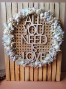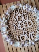 Enfin, l’inscription « All You Need Is Love » en bois trône au centre de ce cercle réalisé avec amour!