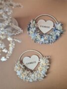 Ici dans sa version mini, cette couronne en bois fleurie avec son cœur renfermant le mot « Bonheur » ou « Famille » gravé fera forcément plaisir si vous recherchez une petite attention à offrir.