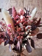 Craquez pour ce joli bouquet de fleurs séchées dans des tons rose, bordeaux et crème accompagné de son vase assorti.