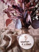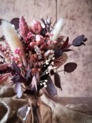 Petit bouquet de fleurs séchées rose, bordeaux et crème avec vase – “Primavera”