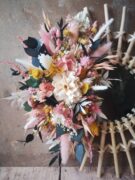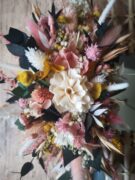 - Assemblage de fleurs/feuillages séchés, fleurs/feuillages stabilisés dans les tons blanc, pêche, jaune et vert
